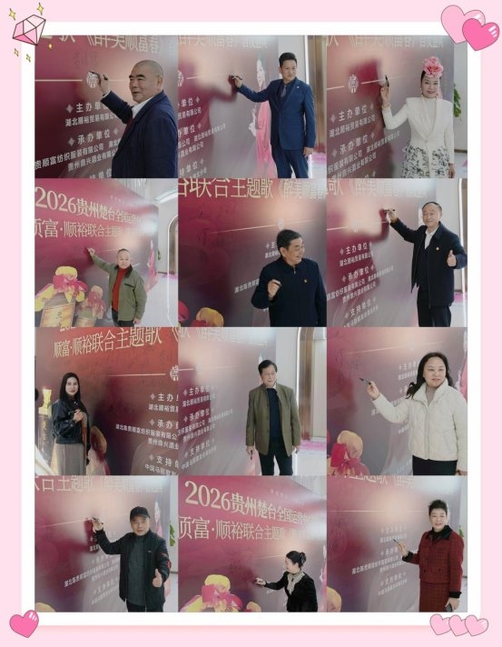 本次活动由湖北顺裕贸易有限公司主办,湖北陈贵顺富纺织服装有限公司、贵州鼎兴酒业有限公司联合承办,中国马丽歌友会湖北分会鼎力支持。政企代表、纺织服装及酒业生产、运营、销售精英;文艺界知名人士及合作伙伴齐聚一堂,湖北电视台、中国网、中华网、环球网等近二十余家媒体现场报道,共同见证贵州楚台全国运营中心的正式启航,聆听企业主题歌《醉美顺富春》的震撼首发,在春日的生机中,共赴一场实业与文化交织的盛宴。