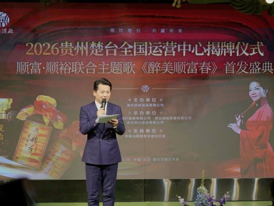 3月20日,农历二月初二龙抬头,恰逢二十四节气春分,双吉交汇、万象更新。湖北顺裕贸易2026贵州楚台全国运营中心揭牌仪式暨顺富·顺裕联合主题歌《醉美顺富春》首发盛典,于武汉盛大启幕。这场以“品牌赋能·文化聚力·共筑未来”为核心主旨的盛会,以实业布局与文化创作双轮驱动,构建起“实业筑基+文化赋能”的战略新格局,标志着顺富·顺裕集团在酱酒产业全国化布局与品牌文化升级之路上,迈出了关键性的一步。