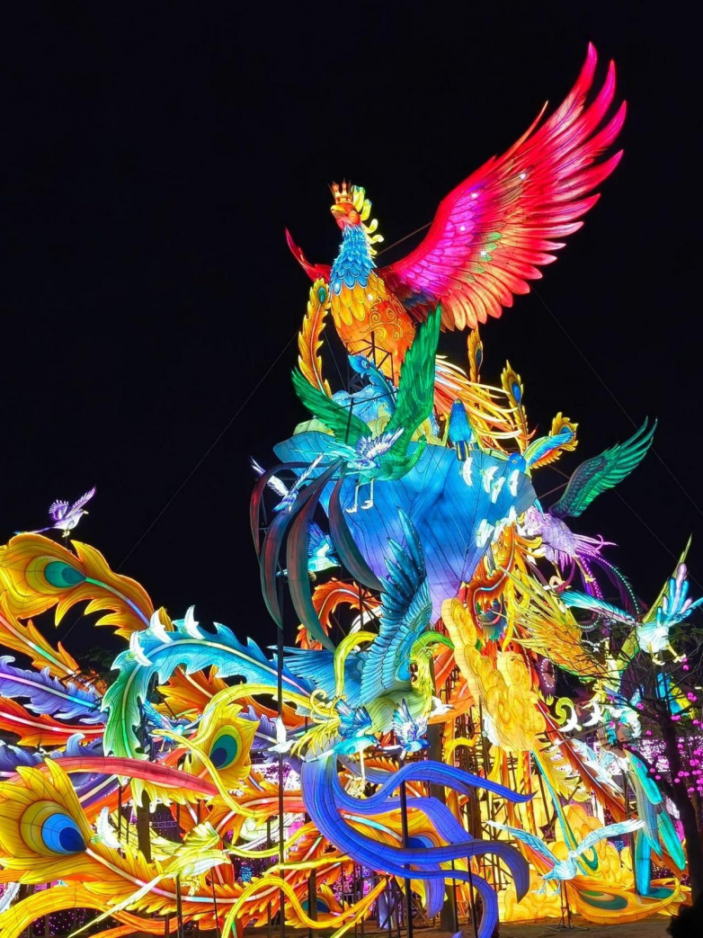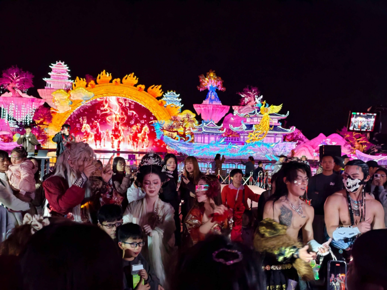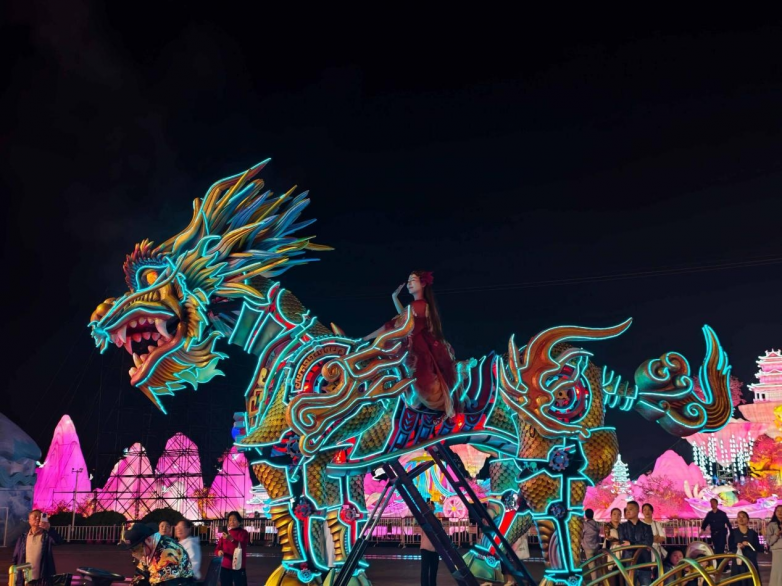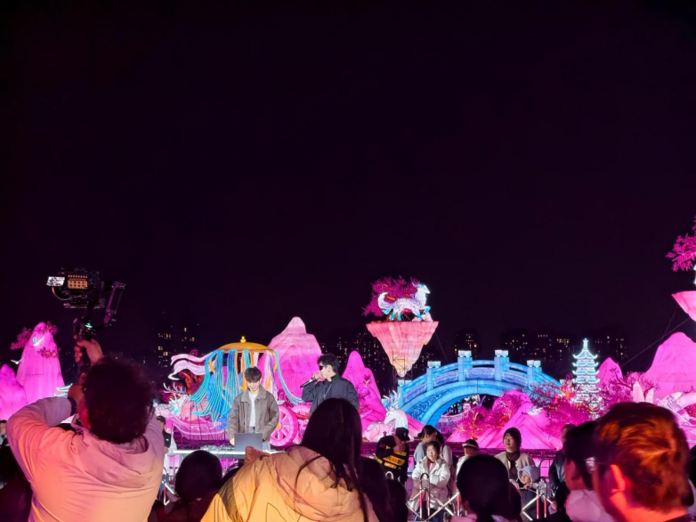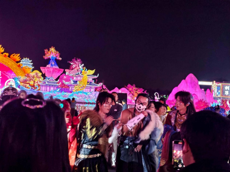 园区内,一场场极具特色的大秀轮番上演,以文化演艺、现代艺术表达与现场互动为主线,让夜晚始终保持热度与节奏感。灯组不再是夜游的唯一主角,而是与演出、音乐、互动场景共同构成一个更有层次、更有故事感的春夜空间。游客不再只是站在一旁“看热闹”,而是真正走进这场夜游盛宴之中,成为春夜氛围的一部分。对于亲子家庭来说,这里有热闹、有新鲜感,也有适合全家共同参与的体验内容;对于年轻情侣和朋友来说,这里既有浪漫灯影,也有足够鲜活的氛围和令人心动的打卡瞬间。