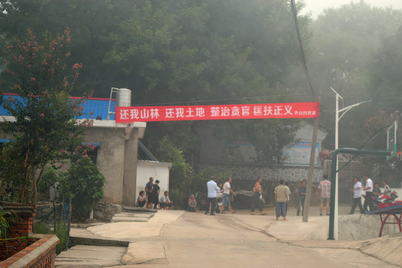 刘山村村民在村委会拉的横幅