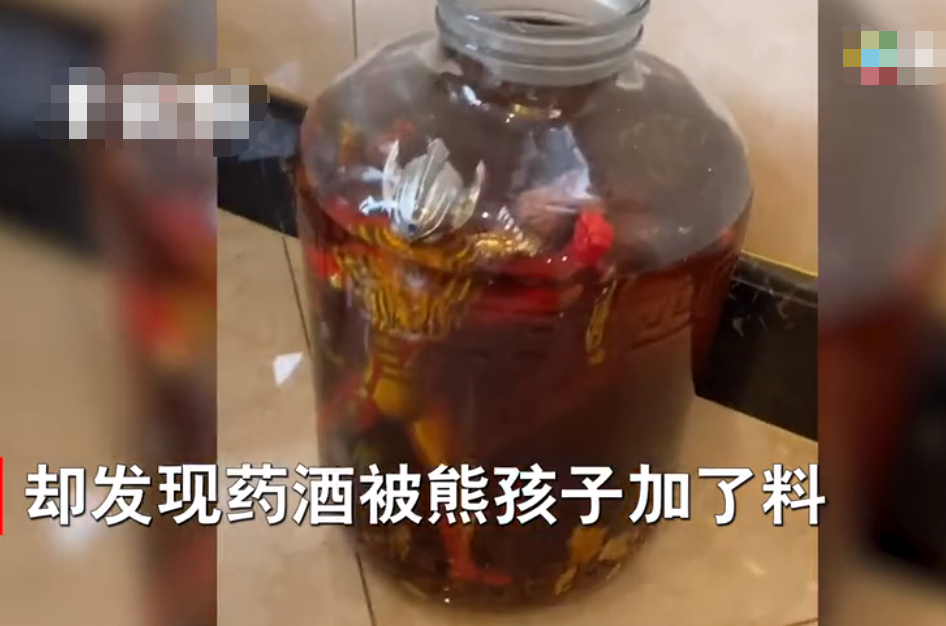 男子泡了10年药酒发现不对劲 熊孩子:给你加点料