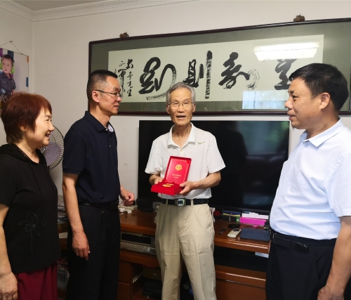 中心领导看望”光荣在党50年“勋章获得者谭太亭