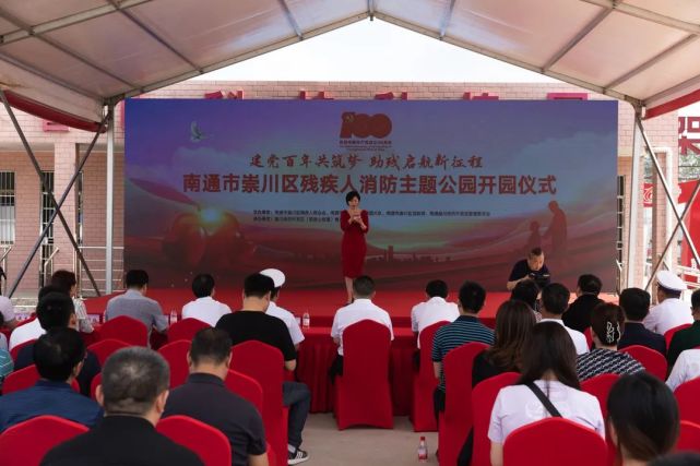 支队党委书记、政治委员兰海飞,南通市残联党组书记、理事长杨丁勇,崇川区委常委、崇川经济开发区党工委书记闫静翔,崇川区委常委、组织部部长奚荣华,崇川区人民政府副区长、党组成员周卫平等领导以及市民群众、消防指战员约150余人参加了开园仪式。