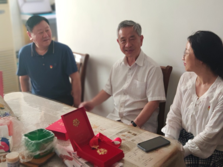 为庆祝中国共产党成立100周年,把党中央的关怀及时传递给每一名老党员,让他们在建党百年之际真切感受到崇高的政治荣光。2021年6月28日,南京市职工大学在常务副校长操国芳、副校长王静的带领下,开展走访慰问老党员活动,并向老党员颁发“光荣在党50年”纪念章,把金灿灿的纪念章佩戴在他们胸前。老党员分别就各自入党和工作生活经历忆初心、谈感受,回顾艰辛历程、颂扬党的恩情。