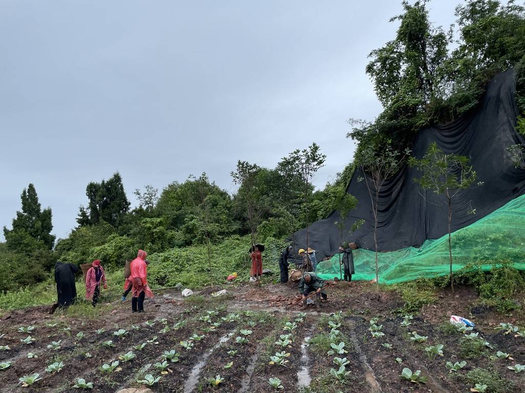 9月16日,记者在现场看到,工人正在砖厂旁的土地上植树,给未复绿的2.6亩土地复绿,旁边新栽的菜苗长势良好,已经长有10公分高,“为实现复垦复绿,我们买了160多株树,其他土地全部栽种了蔬菜。”四通砖厂负责人尚均恩介绍。