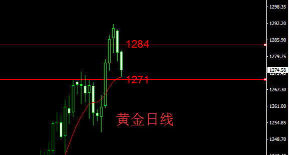 欧美盘行情分析:由于早盘的急跌,导致黄金短线偏空,日线级别多头趋势并未改变,而短期见顶走势又很明确,这个时候,多空争夺将比较激烈!日线吞没形态的形成,说明空头杀跌意愿强烈,从而近期可以考虑高空为主,若强支撑不破位的情况下,那么再分批次布局日线趋势多单。日内策略,在早间延续大跌之后,形成真空期。策略高抛低吸,高空为主。短线压力1278,支撑1271-1273!大区间阻力是1284,支撑是1270!
